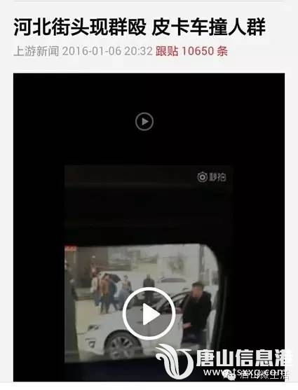 昨日,一條名為“唐山街頭驚現(xiàn)群毆火拼,皮卡撞人”的視頻在網(wǎng)絡(luò)上瘋傳,視頻里多名男子手持棍棒之類(lèi)的工具群毆,一輛皮卡車(chē)多次撞向打斗人群,F(xiàn)場(chǎng)十分慘烈,驚叫聲不斷…… &nb ...