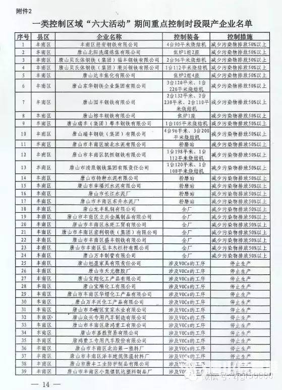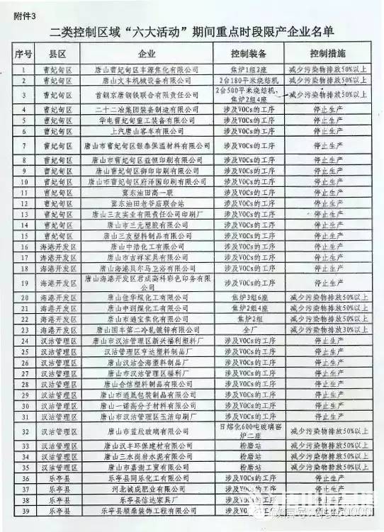 唐山世園會限產(chǎn)名單 中共唐山市委辦公廳、唐山市人民政府辦公廳,于2016年3月18日,召開唐山市環(huán)境保護工作會議,現(xiàn)將有關(guān)會議內(nèi)容通知如下:
