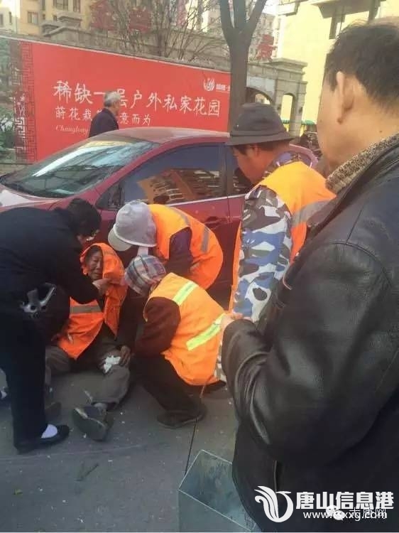 網(wǎng)友爆料,今早九時(shí)許,長(zhǎng)寧道金洋御景/誠(chéng)成尚品附近發(fā)生車禍,一名環(huán)衛(wèi)工人被撞,癱倒在地。 圖片來源:小點(diǎn)8凱