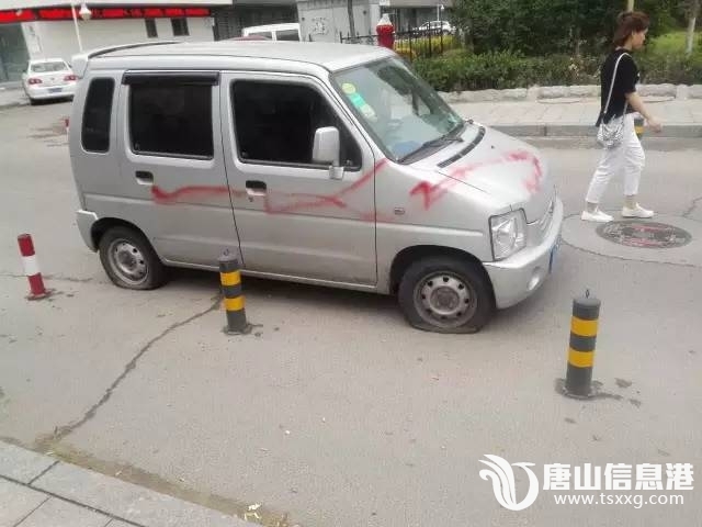據(jù)網(wǎng)友劉先生報(bào)料: 在唐山金港靜園小區(qū),有好幾輛停在通道處的私家車被人用紅漆噴的磨磨嘰嘰,輪胎全被扎癟,車玻璃被砸! 據(jù)說(shuō),這幾輛車是占用了小區(qū)出入口的路,在車輛的后身?xiàng)U子上掛著禁止停車的牌子。 哎呀 ...