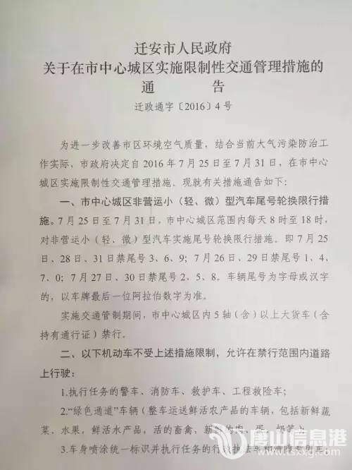 遷安 上面是遷安、灤縣、遵化的限行通知 截止發(fā)稿前(2016年7月24日 20:00) 唐山市區(qū)暫未限行唐山市區(qū)暫未限行唐山市區(qū)暫未限行 請(qǐng)大家相互轉(zhuǎn)告!