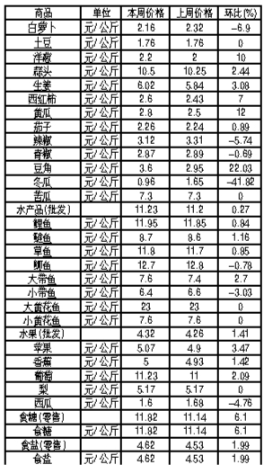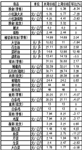 唐山市生活必需品周價(jià)格情況表 (7月16日至22日市商務(wù)局運(yùn)調(diào)處提供)