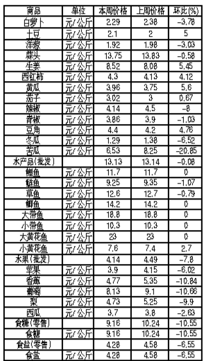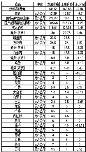 唐山市生活必需品周價(jià)格情況表 (10月29日至11月4日市商務(wù)局運(yùn)調(diào)處提供)