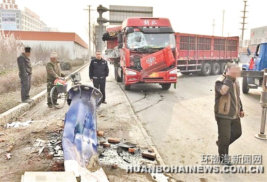 大貨車駕駛?cè)?開車走神撞倒交通信號燈桿 圖為事故現(xiàn)場。警方提供 環(huán)渤海新聞網(wǎng)消息 (記者 季男 魏偉)近日,一大貨車駕駛?cè)嗽谛熊囃局凶呱,致使車輛撞倒路口的交通信號燈桿,幸未砸到其他車輛,沒有人員受傷 ...