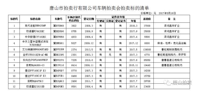 拍賣(mài)時(shí)間:2017年5月19日 上午9:00.②:拍賣(mài)地點(diǎn):興瑭二手車(chē)大市場(chǎng)一號(hào)展廳拍賣(mài)中心 聯(lián)系電話:0315-2096098. 拍賣(mài)公告 我公司依法接受委托,定于2017年5月19日上午9:00在興瑭機(jī)動(dòng)車(chē)大市場(chǎng)拍賣(mài) ...