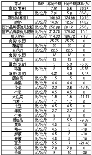 唐山市生活必需品周價格情況表 (5月20日至5月26日市商務局運調處提供)