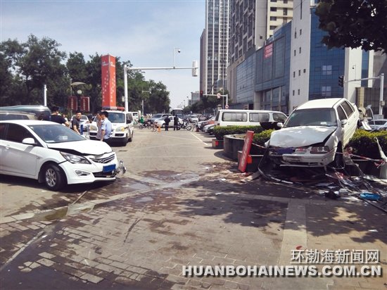 國防道與文化路交叉口7車相撞1車被撞到噴泉池上 環(huán)渤海新聞網(wǎng)消息 (記者 魏偉)昨天凌晨,國防道與文化路交叉口南側發(fā)生7車相撞事故,其中一輛白色轎車被撞到了噴泉池上。 當天上午,記者跟隨交警趕到 ...