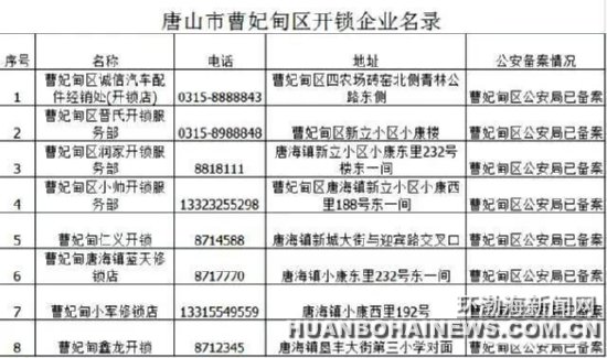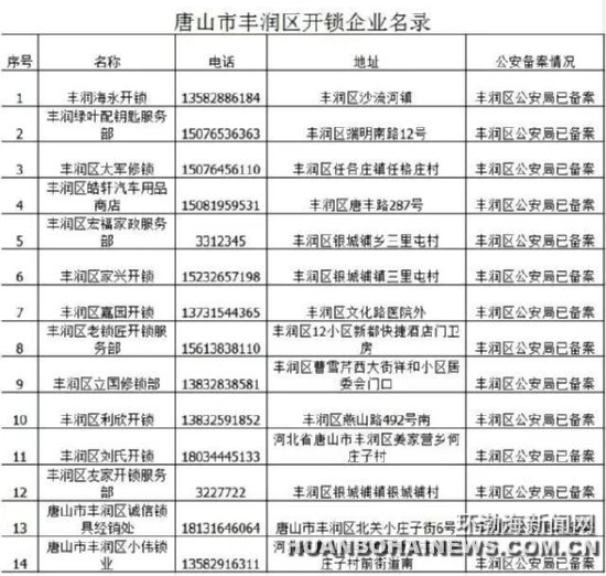 環(huán)渤海新聞網(wǎng)消息 (記者 劉芳)日前,記者從唐山市公安機(jī)關(guān)獲悉,唐山市共有162家開(kāi)鎖企業(yè)完成備案,納入開(kāi)鎖業(yè)名錄。其中:遷安29家、路北20家、樂(lè)亭16家、遵化15家、豐潤(rùn)14家、曹妃甸11家、玉田10家、灤縣10家 ...