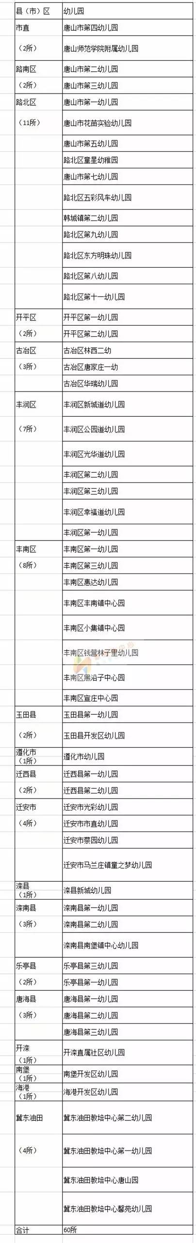 唐山市共有省級示范性幼兒園60所。其中市直2所、路北區(qū)11所、路南區(qū)2所。 來源 中國·唐山