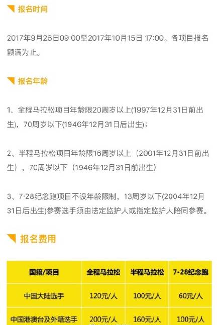 2017唐山國際馬拉松賽將于10月29日鳴槍起跑。 本屆比賽設馬拉松(42.195公里)、半程馬拉松(21.0975公里)、7.28紀念跑(7.28公里)三個項目。 參賽規(guī)模為10000人,其中馬拉松3000人、半程馬拉松3000人、7.28紀念 ...