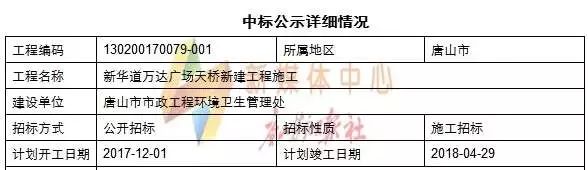 河北建設(shè)工程信息網(wǎng)日前發(fā)布公告,新華道萬達(dá)廣場(chǎng)段將建設(shè)天橋,計(jì)劃開工日期為2017年12月1日。此前已對(duì)翔云道唐山一中天橋、北新道路北實(shí)驗(yàn)小學(xué)天橋新建工程施工進(jìn)行了招標(biāo)。 位于新華東道,十一中門口, ...