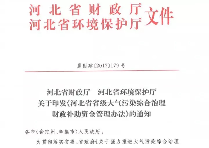 為貫徹落實河北省《關(guān)于強力推進大氣污染綜合治理的意見》及18個專項實施方案決策部署,規(guī)范和加強省級大氣污染綜合治理財政補助資金管理,切實改善全省大氣環(huán)境質(zhì)量,經(jīng)省政府同意,河北制定了《河北省省級大氣污染 ...