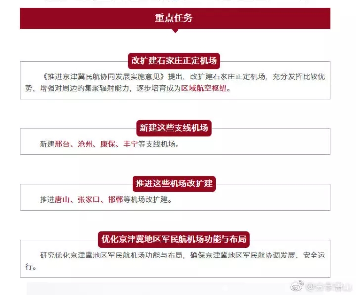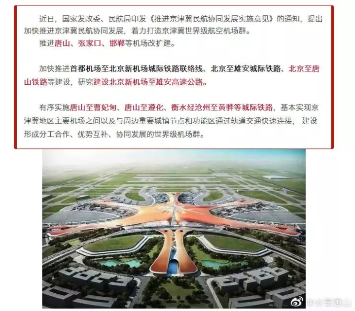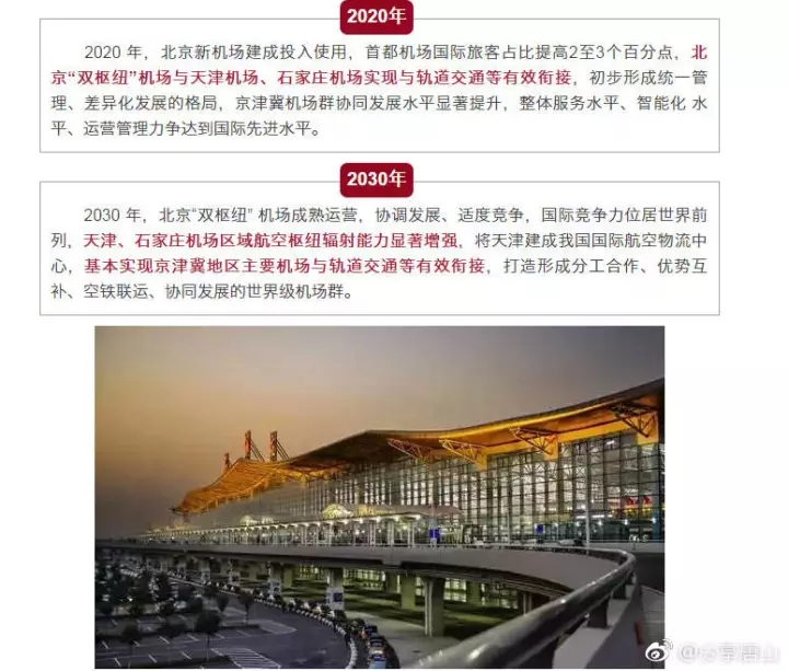 近日,國家發(fā)改委、民航局印發(fā)《推進(jìn)京津冀民航協(xié)同發(fā)展實(shí)施意見》的通知,提出加快推進(jìn)京津冀民航協(xié)同發(fā)展,著力打造京津冀世界級航空機(jī)場群。推進(jìn)唐山、張家口、邯鄲等機(jī)場改擴(kuò)建。加快推進(jìn)首都機(jī)場至北京新機(jī)場城 ...