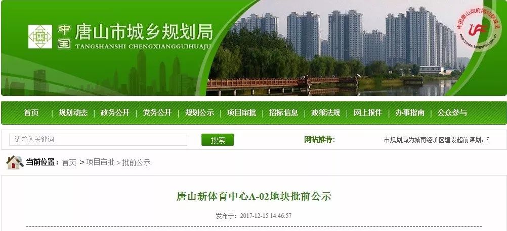 12月15日,唐山市規(guī)劃局網(wǎng)站發(fā)布消息,對由唐山南湖投資集團有限公司承建的唐山新體育中心A-02地塊(新岳道南側(cè)、政通路東北側(cè)、衛(wèi)國路西側(cè))進行批前公示。 公示期為12月16日——12月25日。此項目總建筑面積4590 ...