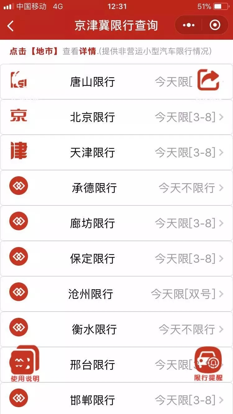 京津冀限行查詢 小程序 為進(jìn)一步方便京津冀地區(qū)車主及時(shí)掌握北京、天津、河北各地市限行情況,2017年12月28日唐山交警推出了【京津冀限行查詢】小程序,上線7天來服務(wù)人數(shù)已超20萬。 ...