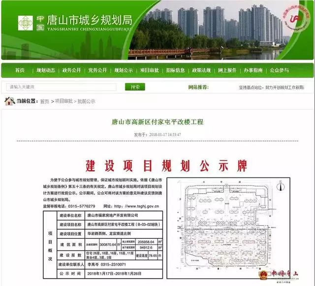 唐山市規(guī)劃局網(wǎng)站1月17日發(fā)布唐山市高新區(qū)付家屯平改樓工程(B-03-02地塊)建設項目規(guī)劃公示。此項目位于華巖路西側、龍富南道北側;總建筑面積300870.64平方米。