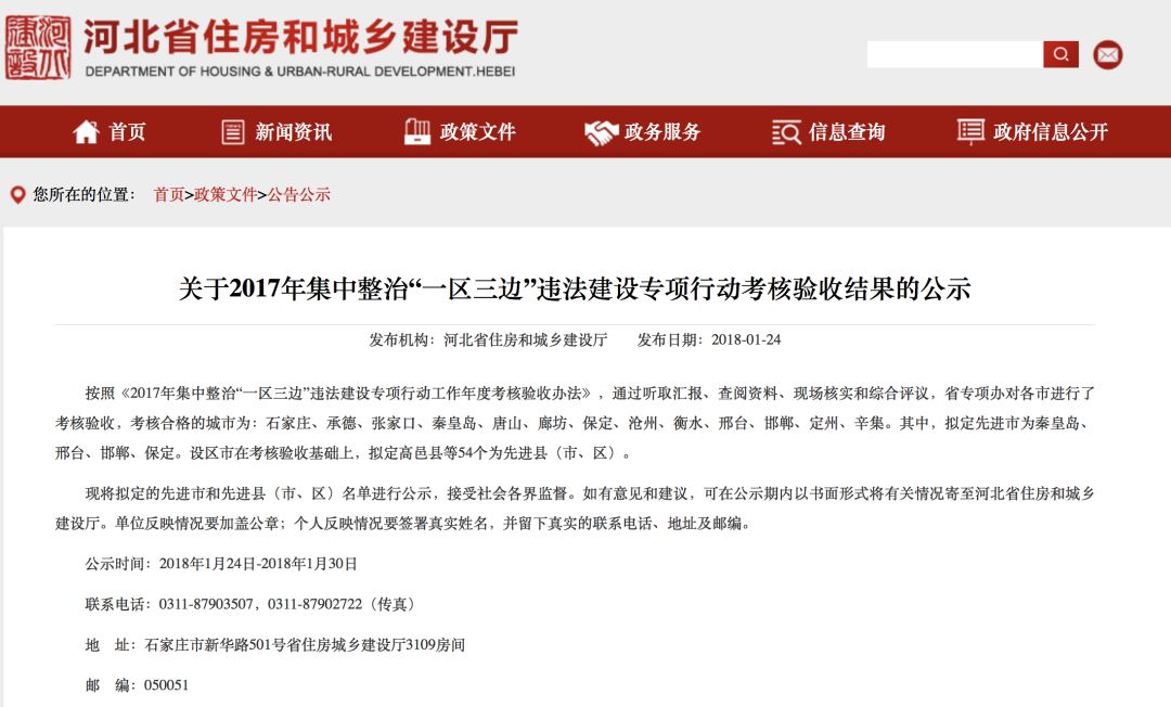 按照《2017年集中整治“一區(qū)三邊”違法建設(shè)專項(xiàng)行動(dòng)工作年度考核驗(yàn)收辦法》,省專項(xiàng)辦對(duì)各市進(jìn)行了考核驗(yàn)收,考核合格的城市為:石家莊、承德、張家口、秦皇島、唐山、廊坊、保定、滄州、衡水、邢臺(tái)、邯鄲、定州、辛 ...