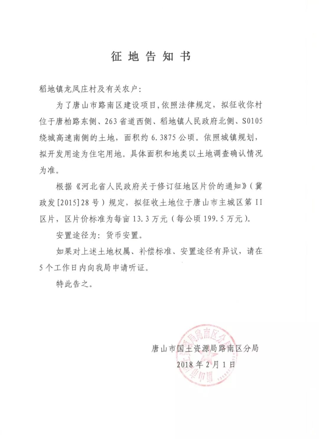 2月2日,路南區(qū)人民政府網(wǎng)站發(fā)布了唐山市國(guó)土資源局路南區(qū)分局征地告知書,為了唐山市路南區(qū)建設(shè)項(xiàng)目,擬對(duì)稻地鎮(zhèn)西門外村、龍鳳莊村、橋東村的土地進(jìn)行征收。 稻地鎮(zhèn)西門外村 征收區(qū)域:唐柏路以西、龍鳳莊以北 ...