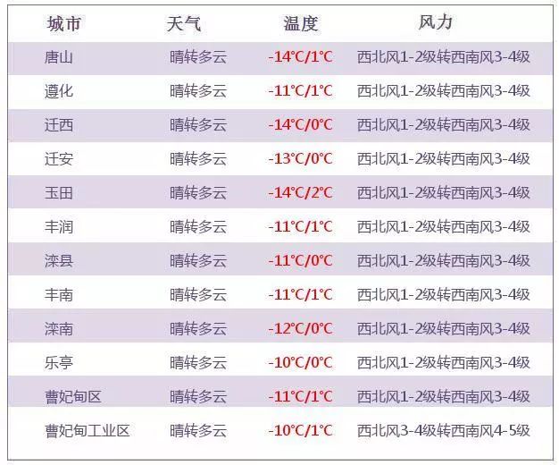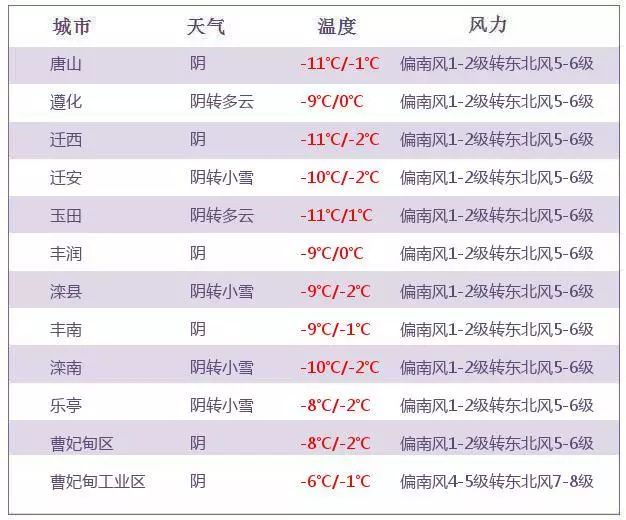 今早唐山大部分地區(qū)出現(xiàn)了不同程度的降溫,早晨8點,唐山降溫幅度達到了6.7℃,弱冷空氣帶給大家的除了降溫,伴隨弱冷空氣而來的,還有大風!遷安、灤縣、灤南、樂亭陰轉(zhuǎn)小雪 來源:唐山天氣