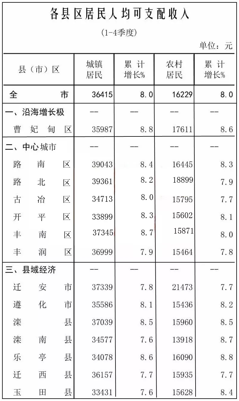 唐山居民人均可支配收入:27786元 2017年唐山居民人均可支配收入達(dá)到27786元,比上年增長(zhǎng)8.8%。 據(jù)2月1日《河北日?qǐng)?bào)》消息,2017年,全省居民人均可支配收入21484元。 唐山比全省平均水平高出6302元。 ...
