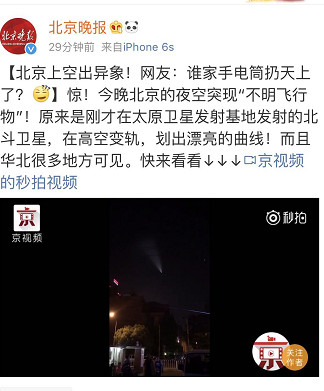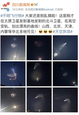 (4月27日)晚上八點左右,唐山的夜空劃過一道奇異的光束,這道不明飛行物高度數(shù)千米,無聲,像巨大的飛行手電,朋友圈瞬間炸了鍋。大家紛紛猜測:是不是UFO? 網(wǎng)友拍攝資料▼ 本次試驗利用高空探空火箭, ...