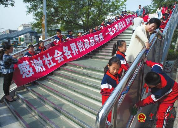 昨天早晨,路北區(qū)實驗小學北校區(qū)墻外,師生們在擦拭橋身的同時,將一條加長條幅精心擺放在剛剛投入使用的過街天橋上,以此表達對社會各界關愛的感激之情。 當日,路北實小特意將感恩教育主題隊會納入升旗儀式 ...