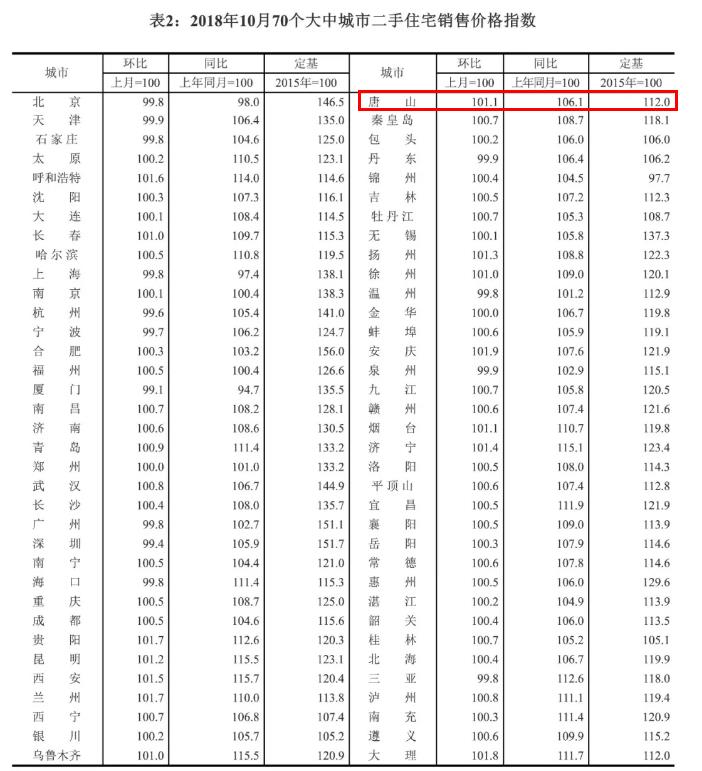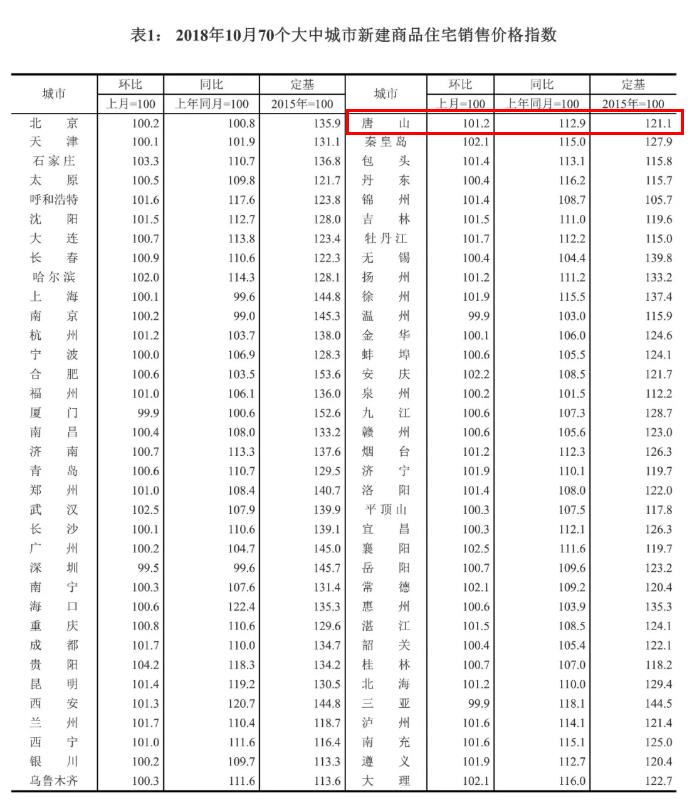 國家統(tǒng)計局發(fā)布10月70個大中城市新建商品住宅銷售價格數(shù)據(jù)。其中唐山市新建商品住宅(不含保障性住房)價格指數(shù)環(huán)比上漲1.2%,同比上漲12.9%。二手住宅價格指數(shù)環(huán)比上漲1.1%,同比上漲6.1%。 10月份70個大中城市 ...