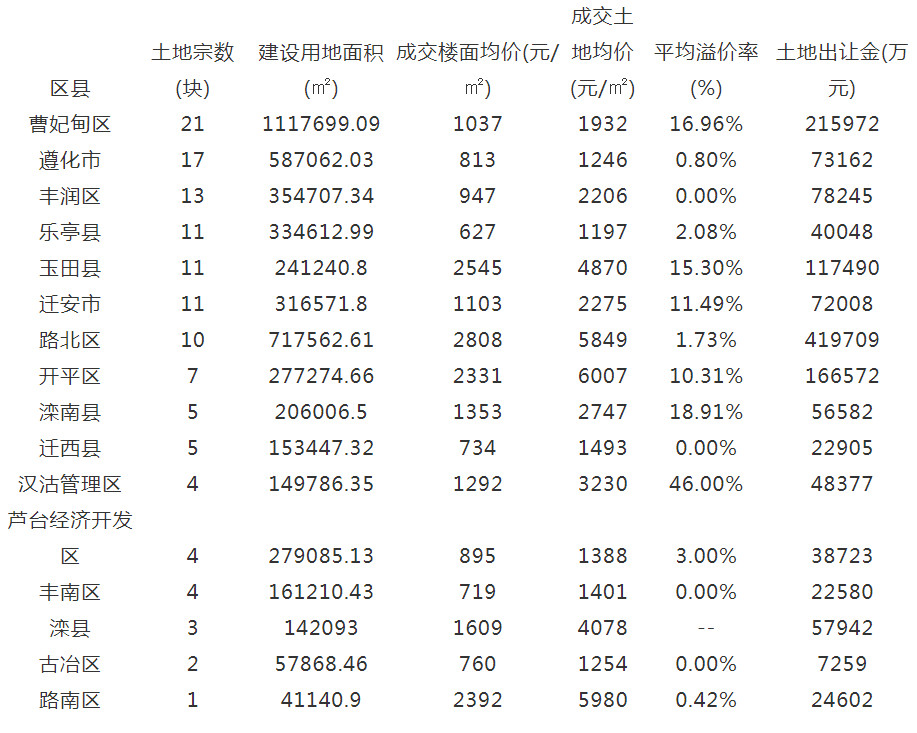 近日 CREIS中國(guó)指數(shù)研究院數(shù)據(jù)公布 2018年唐山各區(qū)域住宅用地成交129宗 建設(shè)用地成交面積5137369.41平方米 土地出讓金1462176萬(wàn)元 & ...