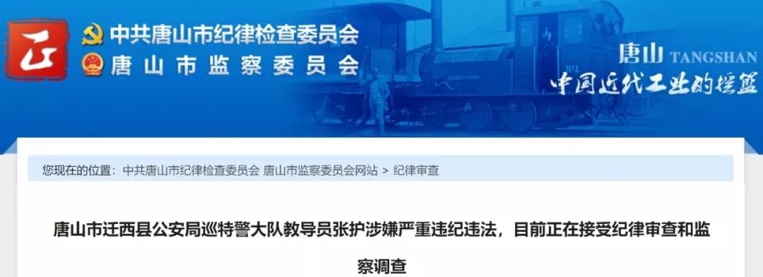 唐山市遷西縣公安局巡特警大隊(duì)教導(dǎo)員張護(hù)涉嫌嚴(yán)重違紀(jì)違法,目前正在接受紀(jì)律審查和監(jiān)察調(diào)查。