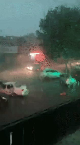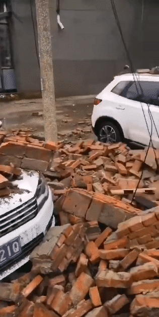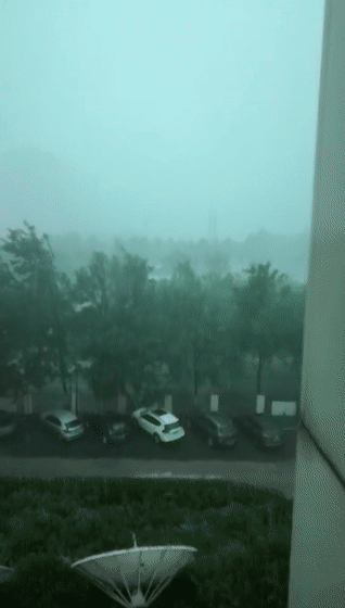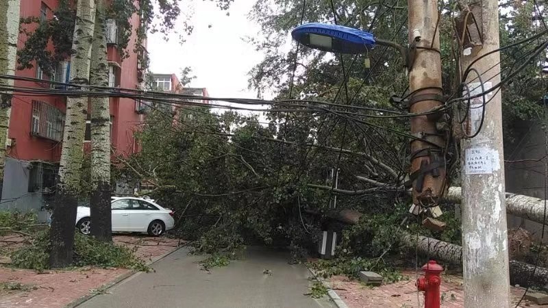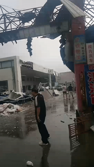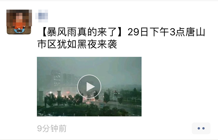 7月29日下午三點左右唐山上空烏云密布,狂風(fēng)四起,白晝?nèi)缫埂?