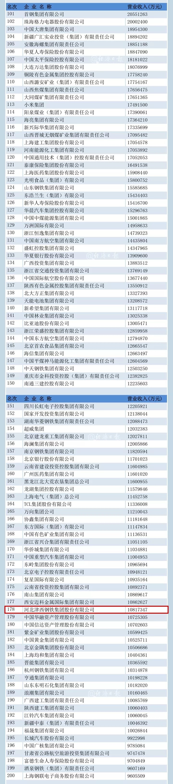 9月1日,中國企業(yè)聯(lián)合會、中國企業(yè)家協(xié)會發(fā)布2019中國企業(yè)500強(qiáng)榜單,唐山有3家企業(yè)上榜。分別是:排名第178位河北津西鋼鐵集團(tuán)股份有限公司、排名第250位開灤(集團(tuán))有限責(zé)任公司、排名第368位唐山港陸鋼鐵有限公 ...