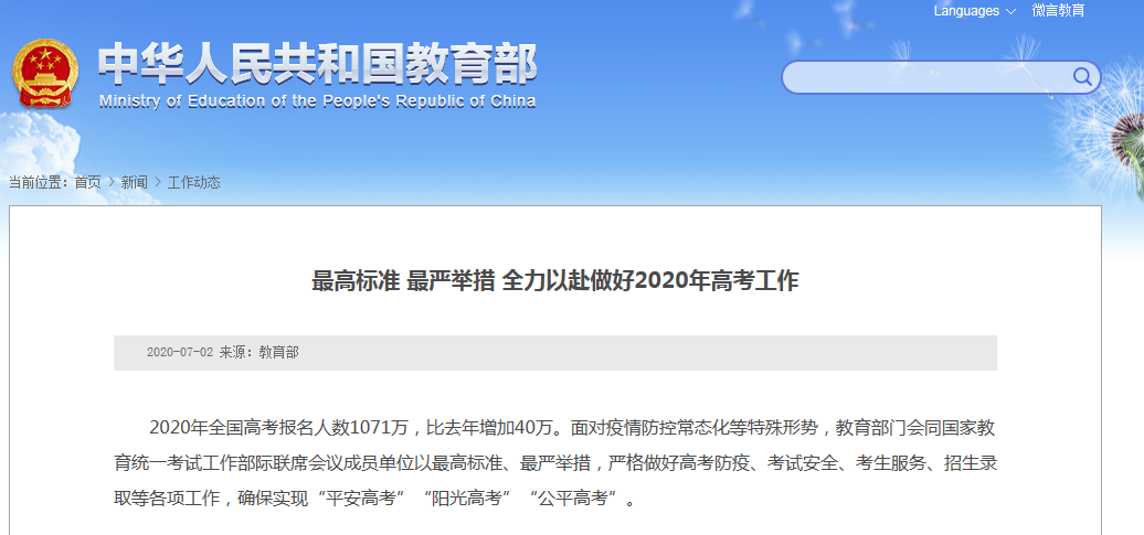 2020年全國高考報名人數(shù)1071萬,比去年增加40萬。面對疫情防控常態(tài)化等特殊形勢,教育部門會同國家教育統(tǒng)一考試工作部際聯(lián)席會議成員單位以最高標(biāo)準(zhǔn)、最嚴(yán)舉措,嚴(yán)格做好高考防疫、考試安全、考生服務(wù)、招生錄取 ...