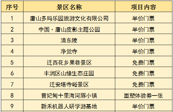 圖為參與活動(dòng)的景區(qū)名稱及項(xiàng)目?jī)?nèi)容。
