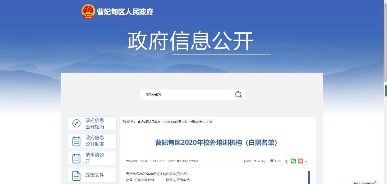 為規(guī)范校外培訓(xùn)機(jī)構(gòu)管理,曹妃甸區(qū)建立了黑白名單制度,此名單截止到2020年10月份,兩個(gè)名單將及時(shí)動(dòng)態(tài)更新并及時(shí)向社會(huì)公布,同時(shí),呼吁各位家長(zhǎng)如確有讓孩子接受課外培訓(xùn)的需求,要注 ...