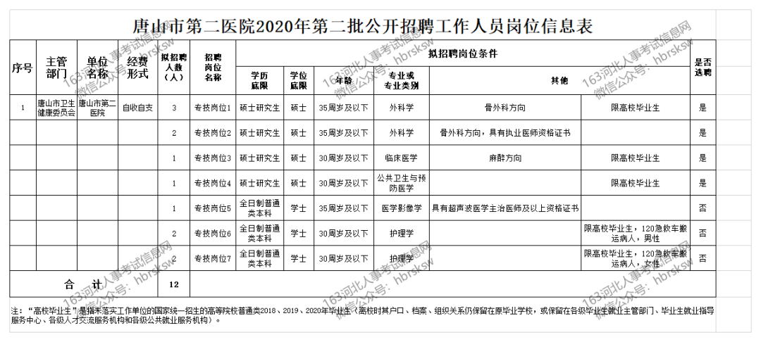 唐山市第二醫(yī)院2020年第二批公開(kāi)招聘12名工作人員公告 為滿足我院工作需要,貫徹落實(shí)《中共中央組織部辦公廳人力資源社會(huì)保障部辦公廳關(guān)于應(yīng)對(duì)新冠肺炎疫情影響做好事業(yè)單位公開(kāi)招聘高校畢業(yè)生工作的通知》,根據(jù) ...