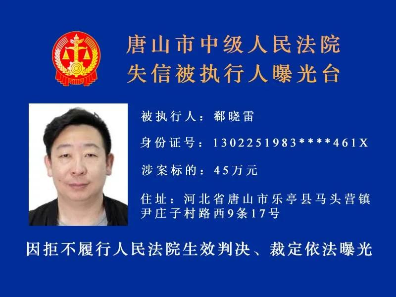 唐山市中級人民法院發(fā)布新一期失信被執(zhí)行人名單,詳情: 什么情形會被列入失信被執(zhí)行人名單 被執(zhí)行人未履行生效法律文書確定的義務,并具有下列情形之一的,人民法院應當將其納入失信被執(zhí)行人名單,依 ...