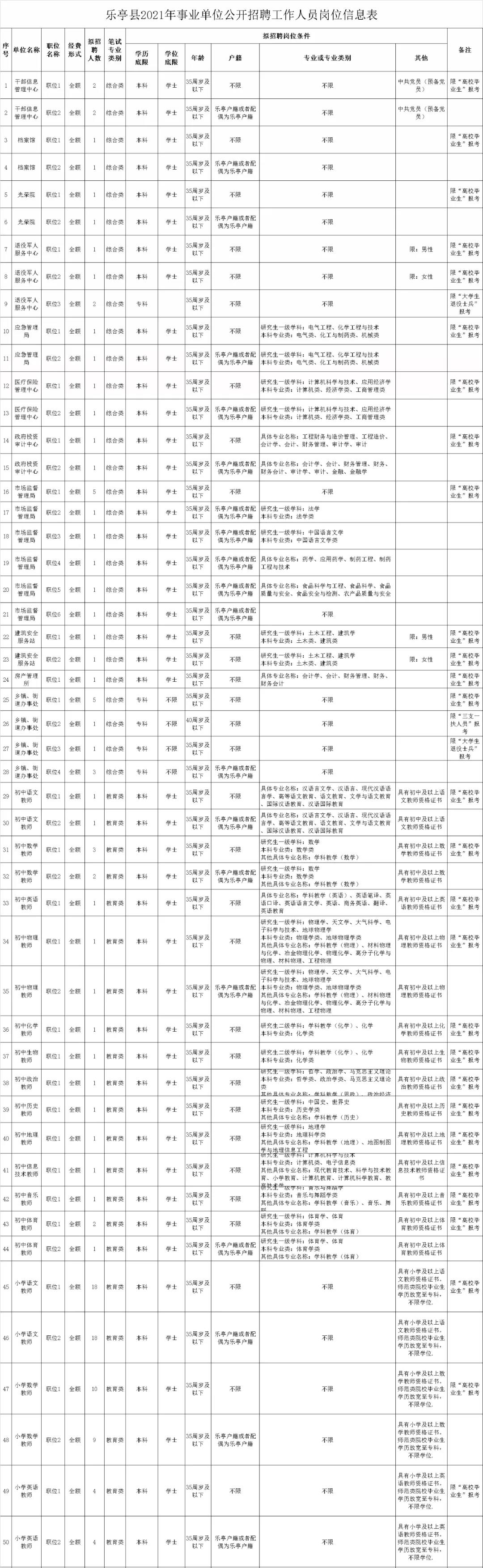 樂亭縣2021年事業(yè)單位公開招聘工作人員公告為滿足樂亭縣事業(yè)單位工作需要,根據(jù)《事業(yè)單位人事管理條例》及《河北省事業(yè)單位公開招聘工作人員暫行辦法》,經(jīng)研究決定,面向社會公開招聘事業(yè)編制工作人員191名,制定 ...