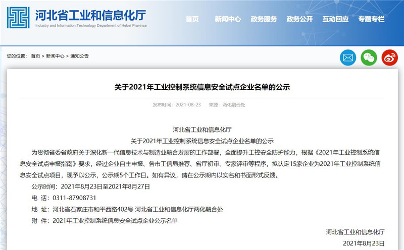 為貫徹河北省委省政府關(guān)于深化新一代信息技術(shù)與制造業(yè)融合發(fā)展的工作部署,全面提升工控安全防護(hù)能力,根據(jù)《2021年工業(yè)控制系統(tǒng)信息安全試點(diǎn)申報(bào)指南》要求,經(jīng)過(guò)企業(yè)自主申報(bào)、各市工信局推薦、省廳初審、專家評(píng)審 ...