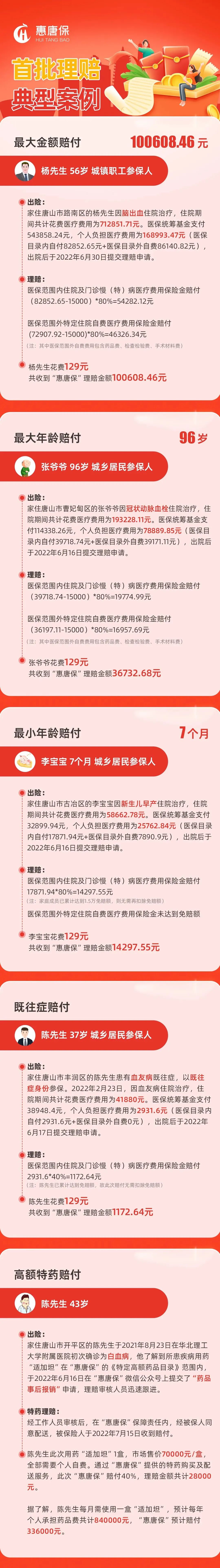 “惠唐保”自6月16日開(kāi)放理賠以來(lái)截至7月28日,已完成賠付8734件累計(jì)賠付金額2233.63萬(wàn)元單筆最大賠付金額超10萬(wàn)元理賠,我們是認(rèn)真的!