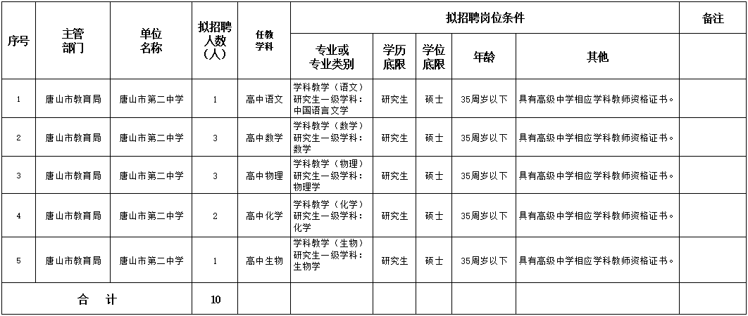 唐山市第二中學(xué)2023年教師專項選聘工作方案為滿足我校對高層次人才和緊缺學(xué)科教師的需求,依據(jù)唐山市教育局發(fā)布《唐山市市直中小學(xué)2023年教師專項選聘工作方案》,擬面向教育部直屬師范大學(xué)、“雙一流”大學(xué)和省級重 ...