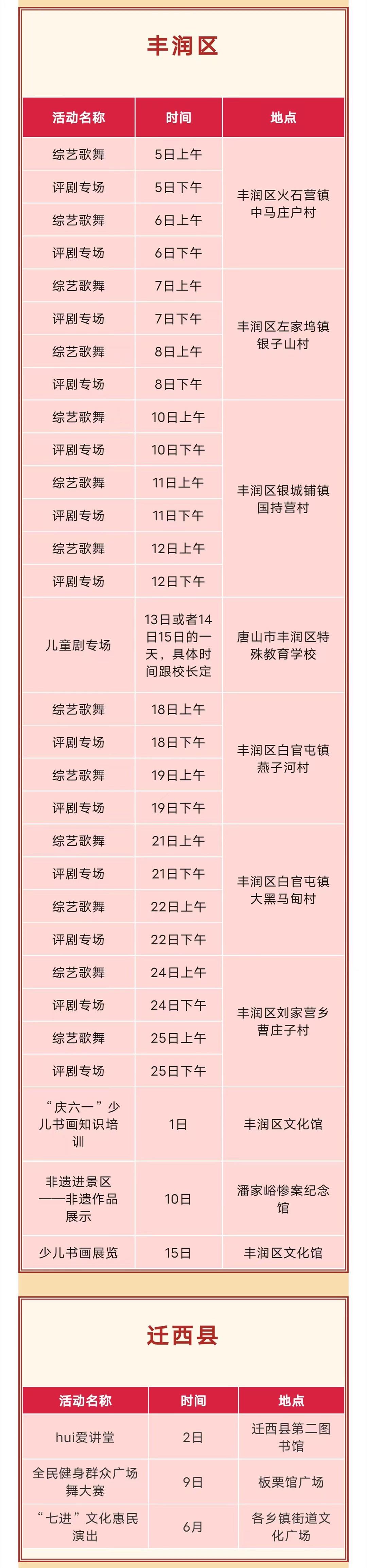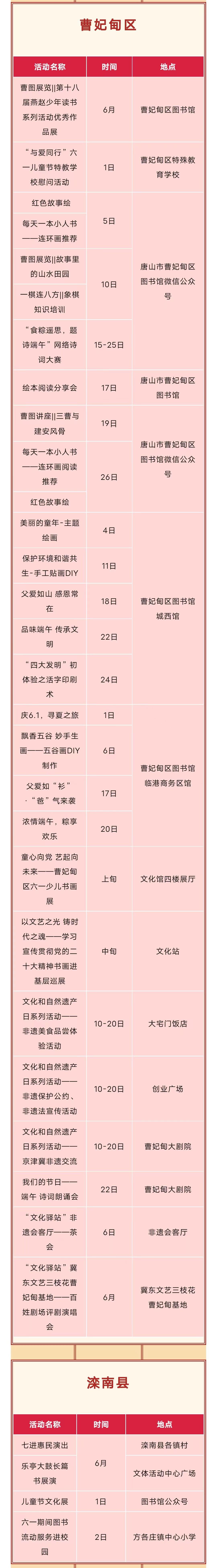 唐山市 6月公共文化活動(dòng) 來(lái)源: 唐山公共文化旅游