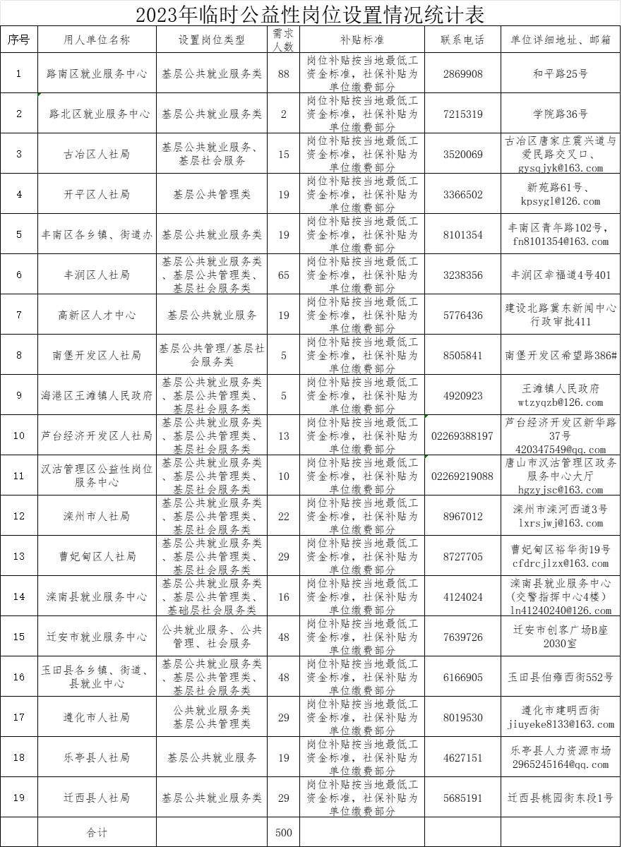 唐山市人力資源和社會保障局關(guān)于發(fā)布2023年度臨時公益性崗位設(shè)置情況公告按照《唐山市就業(yè)工作領(lǐng)導(dǎo)小組關(guān)于印發(fā)<關(guān)于優(yōu)化調(diào)整穩(wěn)就業(yè)政策全力促發(fā)展惠民生的十七條措施>的通知》(唐就字〔2023〕5號)、《河北省人 ...