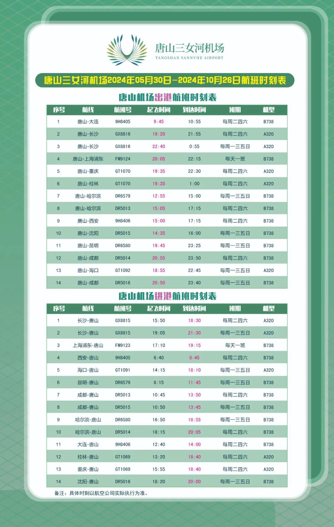 為提升機(jī)場(chǎng)航線(xiàn)通達(dá)性,唐山機(jī)場(chǎng)積極協(xié)調(diào)航空公司,定于6月中旬恢復(fù)?冢粕胶骄(xiàn),新開(kāi)唐山-重慶-桂林航線(xiàn),為市民出行提供更多出行選擇。唐山-海口航線(xiàn)唐山-?诤骄(xiàn)于6月14日恢復(fù),每周一三五七執(zhí)飛,機(jī)型空 ...