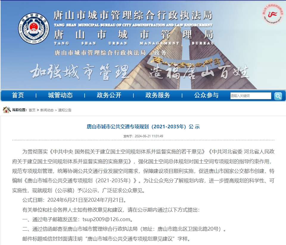 唐山市城市公共交通專項規(guī)劃公示 規(guī)劃內(nèi)容 1.公共交通發(fā)展戰(zhàn)略(1)提高公共交通供給,有效提升服務(wù)水平;(2)支撐城市空間布局,強化區(qū)域功能中心;(3)鞏固公共交通服務(wù),合理引導(dǎo)機動化發(fā)展。2.線網(wǎng)控制性 ...