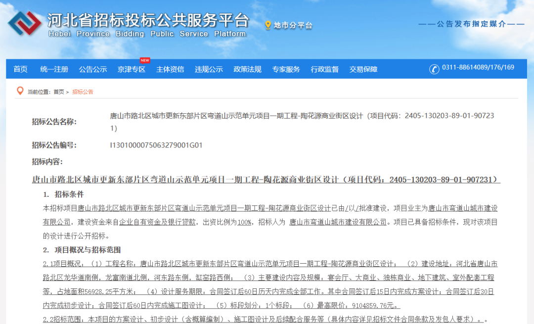 工程名稱:唐山市路北區(qū)城市更新東部片區(qū)彎道山示范單元項目一期工程-陶花源商業(yè)街區(qū)設(shè)計 建設(shè)地址:河北省唐山市路北區(qū)龍華道南側(cè),龍富南道北側(cè),河?xùn)|路東側(cè),缸窯路西側(cè) 主要建設(shè)內(nèi)容及規(guī)模:宴會廳、大商 ...