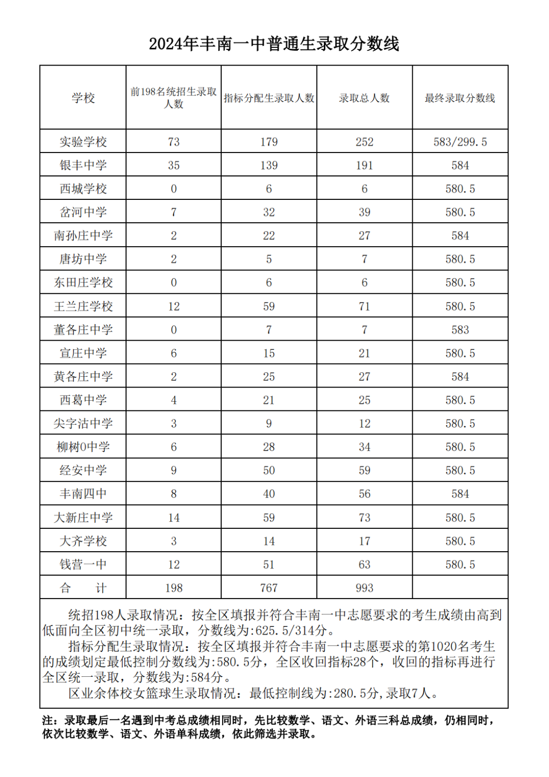 2024年豐南一中普通生錄取分數線 來源:豐南發(fā)布