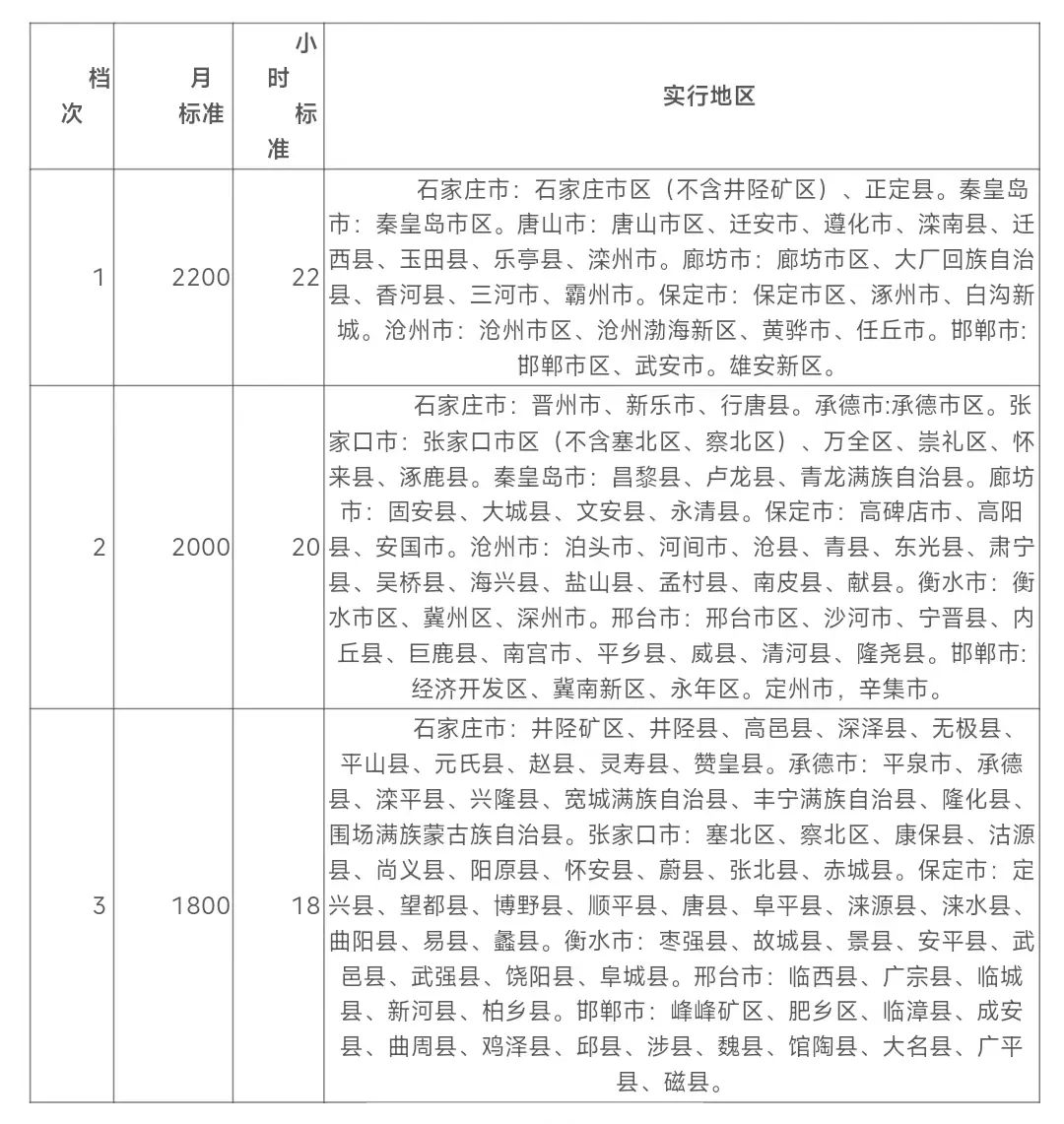 7月5日人社部官網(wǎng)公布了 最新的全國(guó)各地區(qū)最低工資標(biāo)準(zhǔn)河北省月最低工資標(biāo)準(zhǔn)第一檔:2200元第二檔:2000元第三檔:1800元河北省小時(shí)最低工資標(biāo)準(zhǔn)第一檔:22元第二檔:20元第三檔:18元 圖源:人力資源和社會(huì)保障 ...
