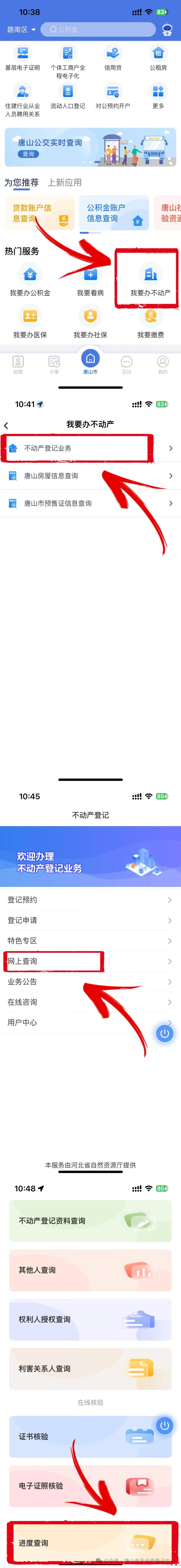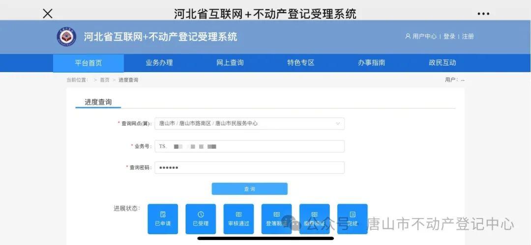 群眾辦理了不動產(chǎn)登記業(yè)務(wù),怎么能夠第一時(shí)間了解業(yè)務(wù)辦理進(jìn)展到哪個(gè)環(huán)節(jié)了?8月23日,唐山市資規(guī)局不動產(chǎn)登記中心正式開通業(yè)務(wù)辦理進(jìn)度線上查詢服務(wù)。據(jù)了解,群眾只需通過簡單的操作,便可隨時(shí)隨地查詢不動產(chǎn)登記 ...