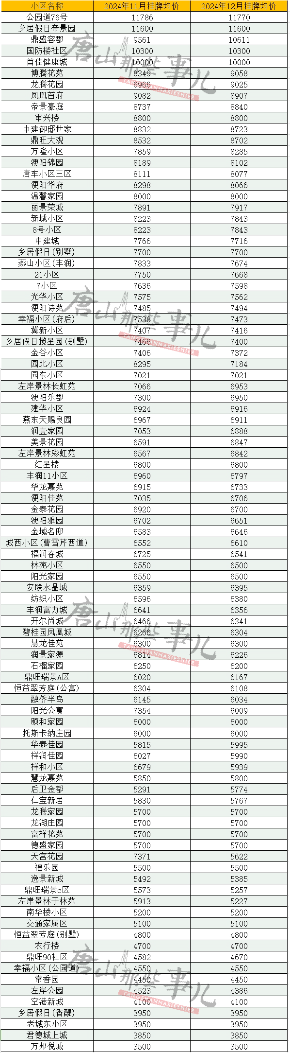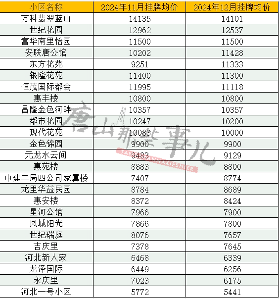 唐山各縣區(qū)二手房12月最新匯總表(僅!供!參!考。‍再次提醒: ‍①以下的房?jī)r(jià)數(shù)據(jù)為唐山二手房房?jī)r(jià) ②數(shù)據(jù)來(lái)源安居客,僅供參考 具體數(shù)據(jù)以市場(chǎng)成交價(jià)為準(zhǔn) 2024年12月唐山房?jī)r(jià)走 ...