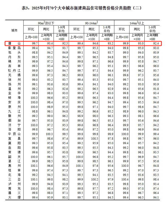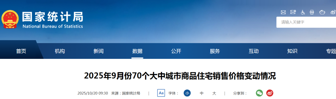 10月20日,國家統(tǒng)計(jì)局發(fā)布2025年9月份70個(gè)大中城市商品住宅銷售價(jià)格變動(dòng)情況統(tǒng)計(jì)數(shù)據(jù)詳情如下: 來源:國家統(tǒng)計(jì)局